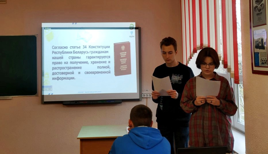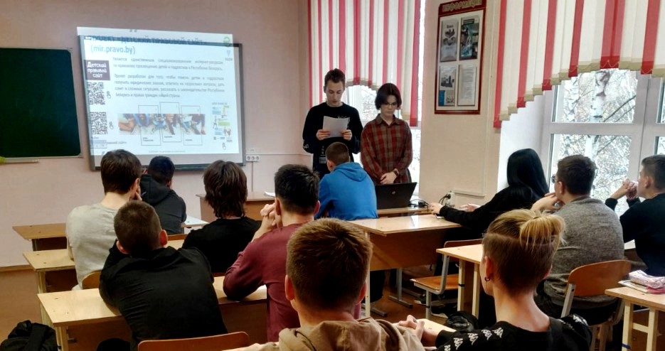 - 09.02.23 викторина «Знаешь ли ты Закон?». Викторина проходила в общежитии колледжа. Ребята проверили в игровой форме знания своих прав и обязанностей в соответствии с законодательством, поговорили о значении Конституции и государственных символах Республики Беларусь, анализировали и принимали решения в различных смоделированных правовых ситуациях;