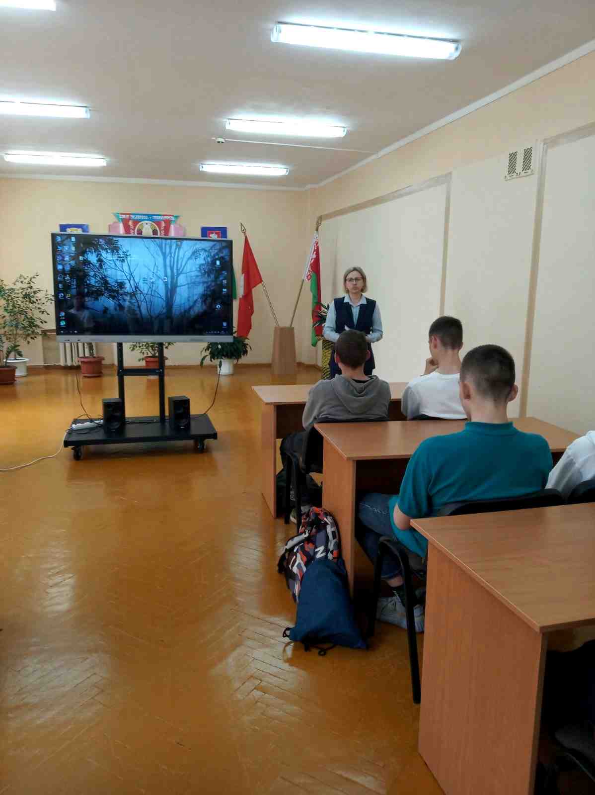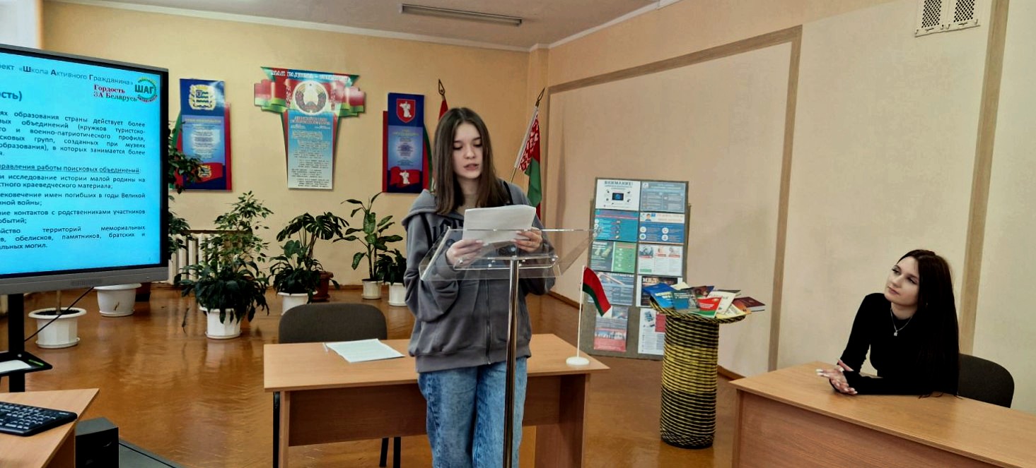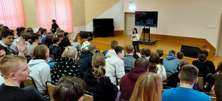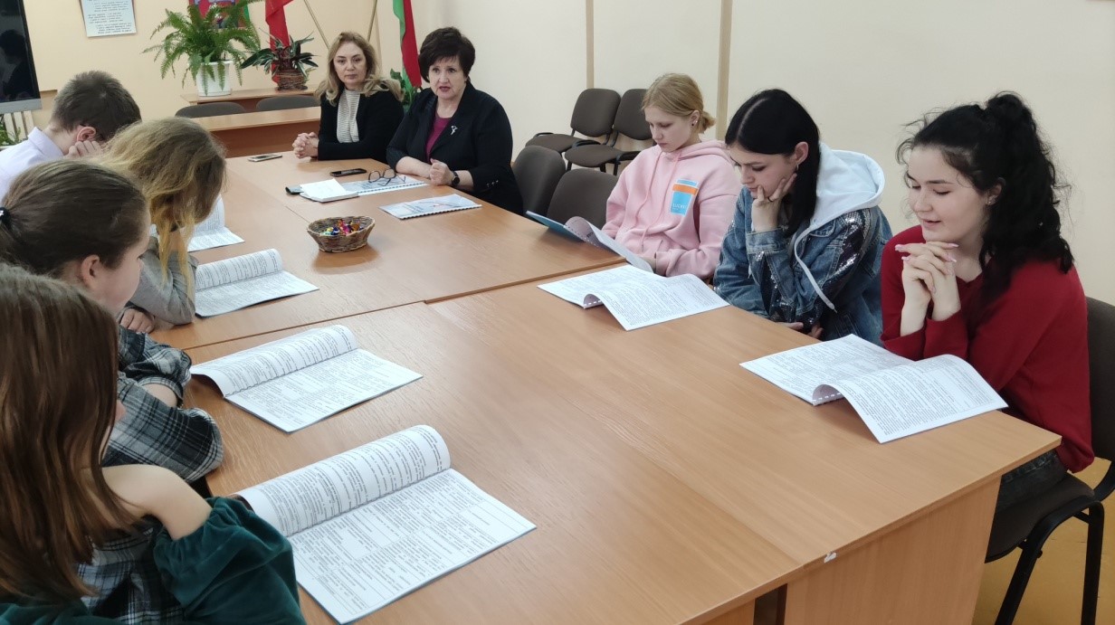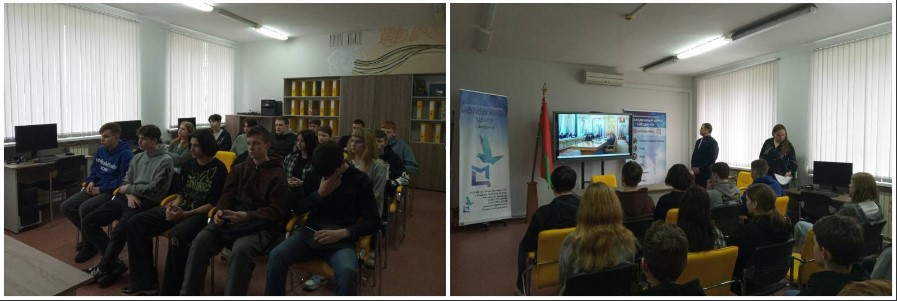 Ребята с интересом посмотрели видеоролик и поддержали диалог с гостями об истории белорусской государственности и родного города. А Наталия Владимировна постаралась увлечь слушателей темой молодежной политики, которая направлена на создание необходимых условий для выбора молодыми гражданами своего жизненного пути, развития потенциала для их самореализации и ответственного активного участия в создании сильной и процветающей Беларуси.