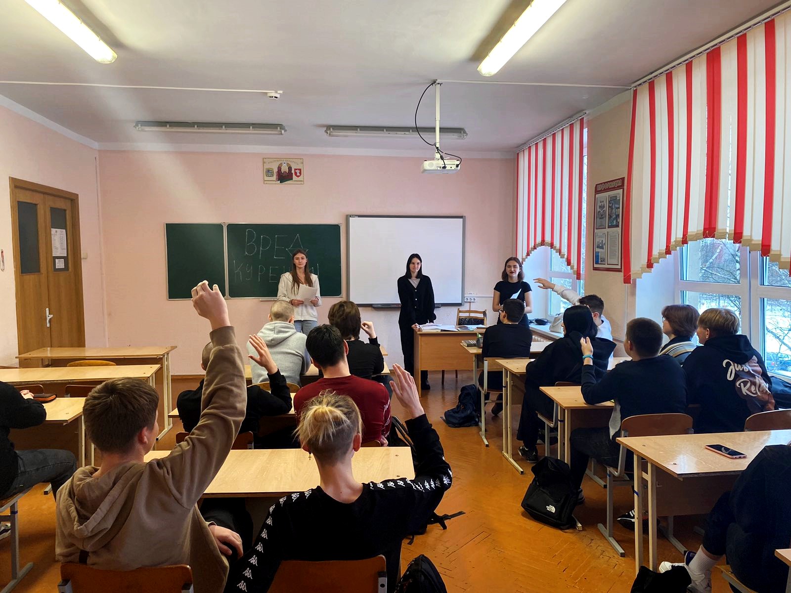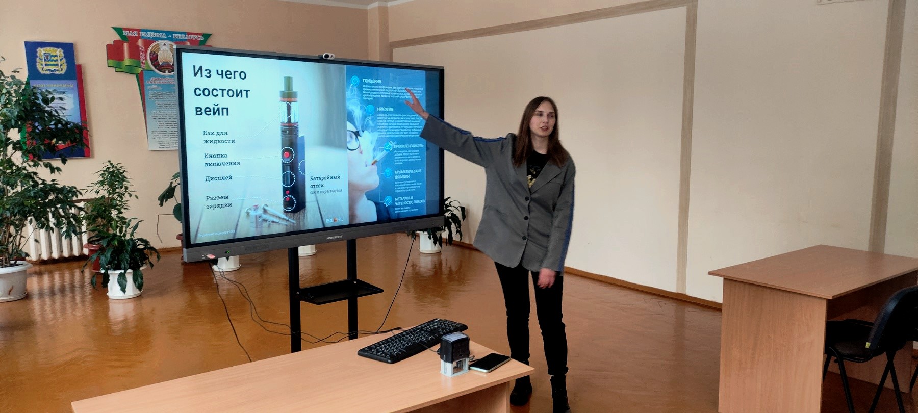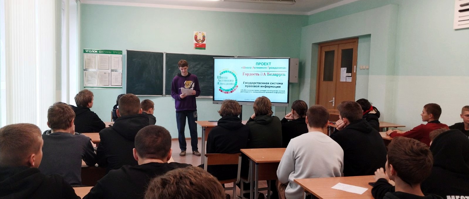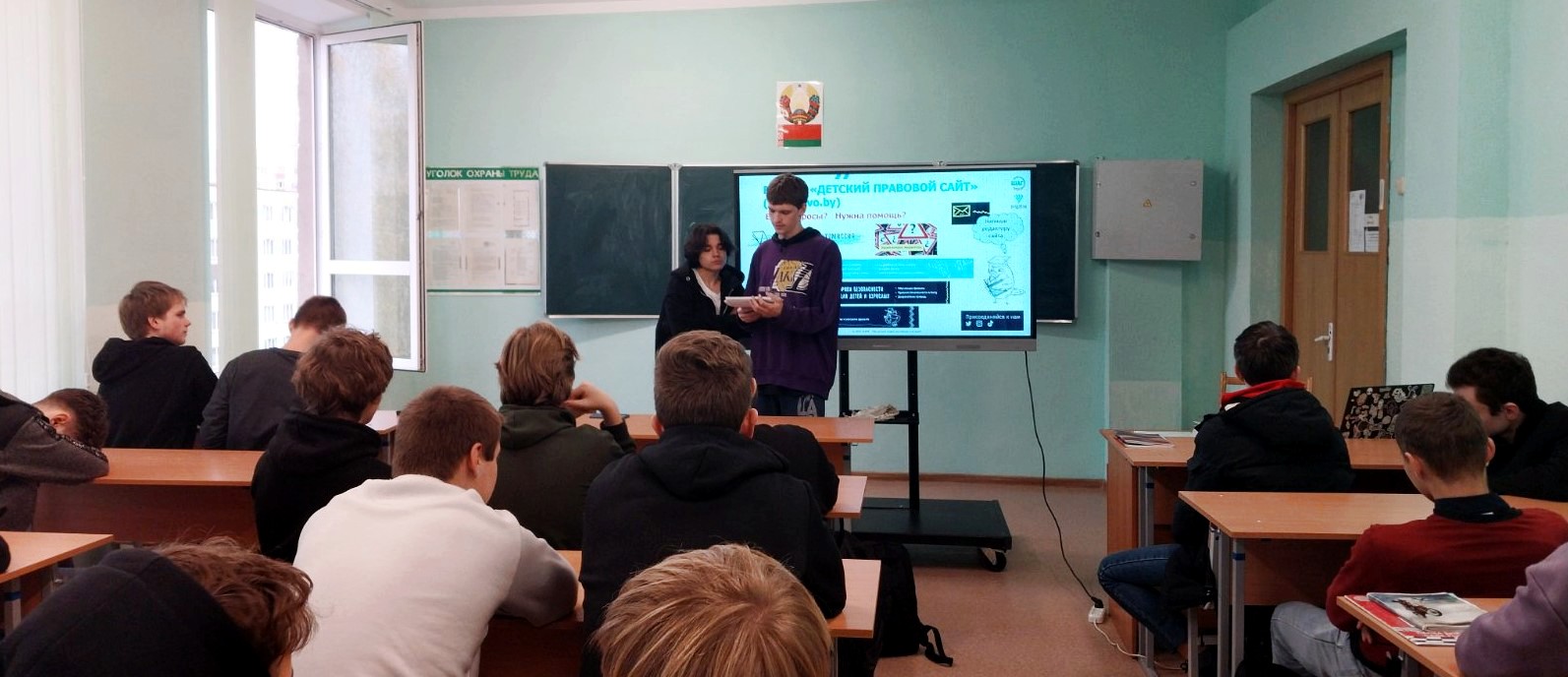 Ребята с интересом посмотрели видеоролик и поддержали диалог с гостями об истории белорусской государственности и родного города. А Наталия Владимировна постаралась увлечь слушателей темой молодежной политики, которая направлена на создание необходимых условий для выбора молодыми гражданами своего жизненного пути, развития потенциала для их самореализации и ответственного активного участия в создании сильной и процветающей Беларуси.