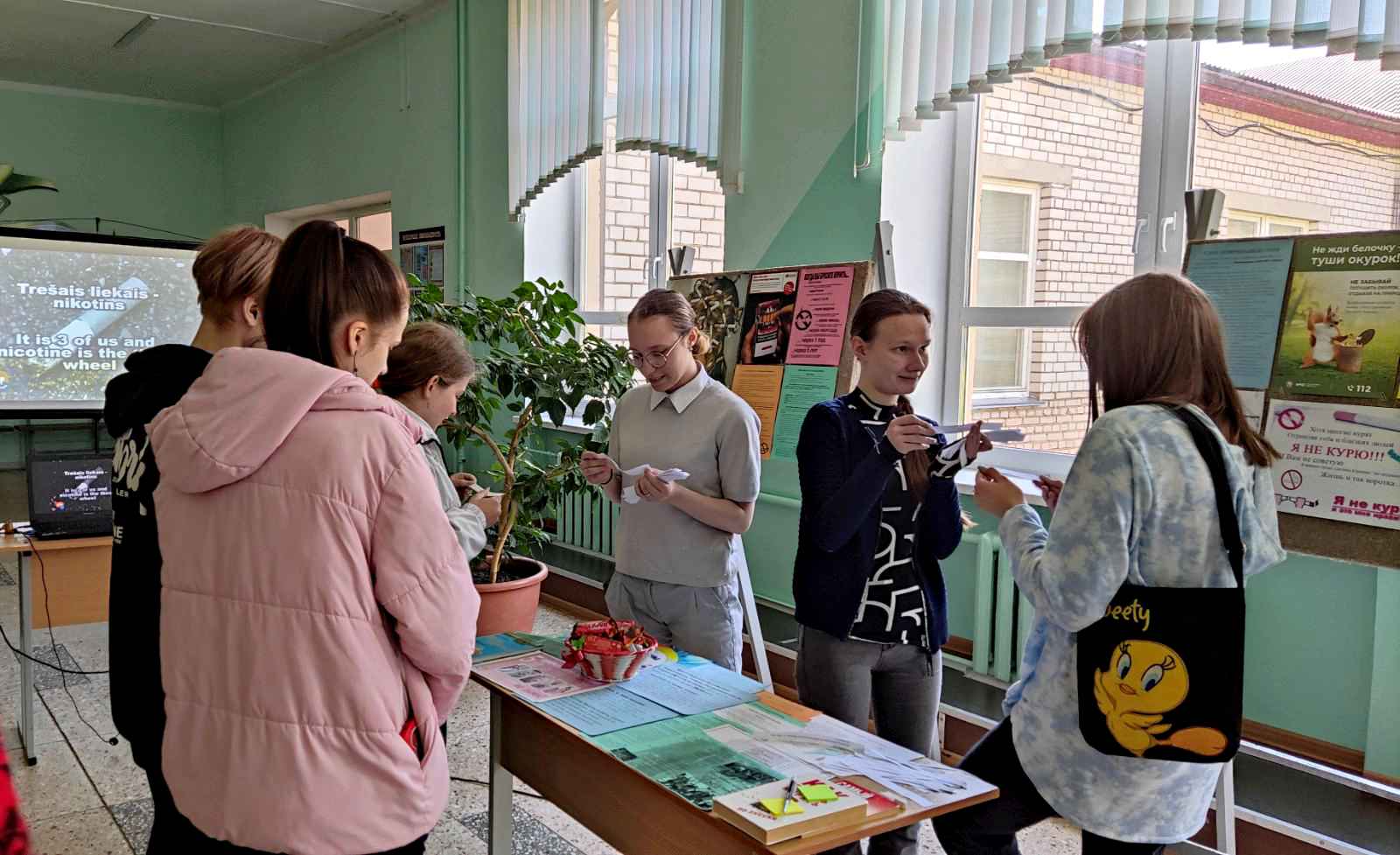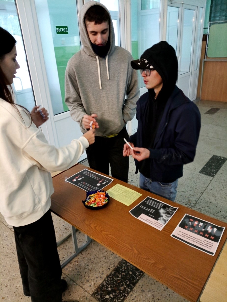 Колледж принял участие в республиканской информационно-образовательной акции «Беларусь против табака», приуроченной ко Всемирному дню без табака (World No Tobacco Day), который ежегодно отмечается во всем мире 31 мая. В рамках акции был организован просмотр и обсуждение тематических видеороликов, оформлена выставка литературы по профилактике табакокурения, раздавались буклеты и памятки, проведены информационные, кураторские часы по предупреждению вредных привычек: "А правда ли это вредные привычки?", "Портрет курильщика", "Курение- социальная проблема общества", организована встреча учащихся с подростковым врачом-наркологом УЗ "Жодинская ЦГБ" Шевчик О.В., члены волонтерского отряда "Дорогой добра" провели для учащихся викторину "Что нужно знать о табакокурении?", а также была организована работа интерактивного стенда, на котором учащиеся обозначали свое мнение о вредной превычке.