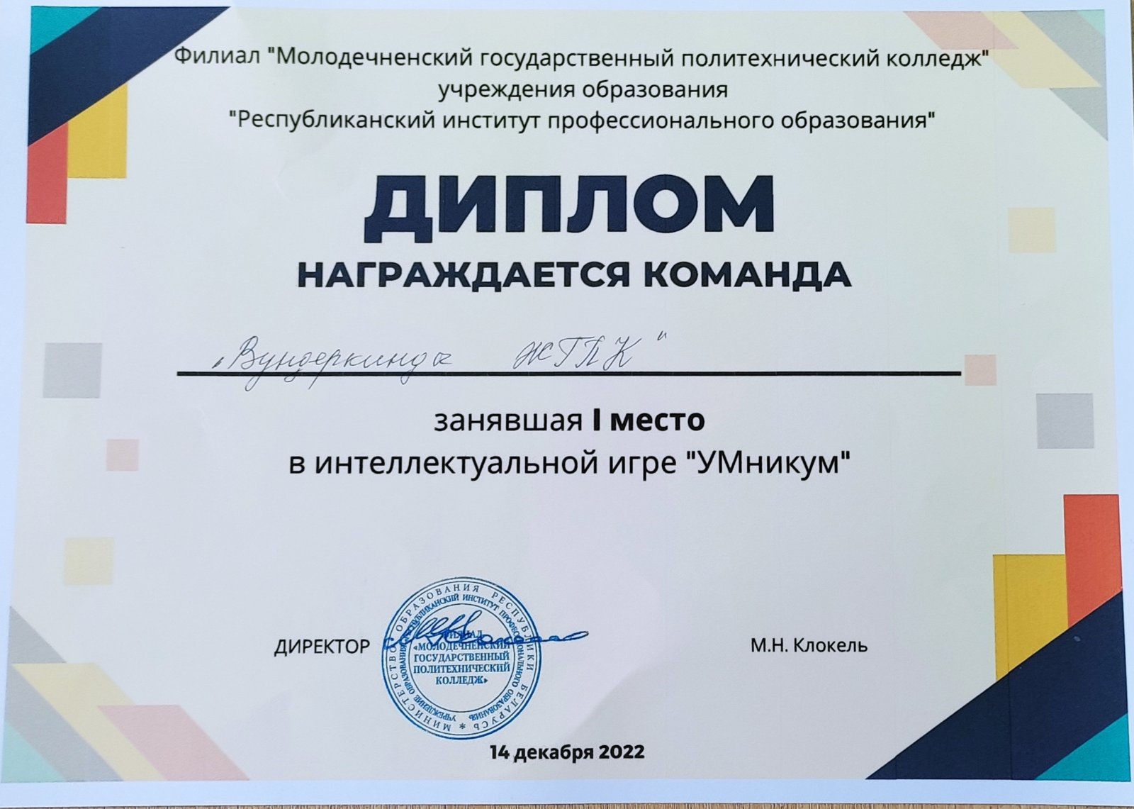 30 марта на базе филиала «Молодечненский государственный политехнический колледж» УО РИПО состоялась областная интеллектуальная игра «Мозговой штурм» среди команд учащихся учреждений среднего специального и профессионального образования Минской области . Обучающиеся нашего колледжа заняли 3 место. Поздравляем ребят!!!