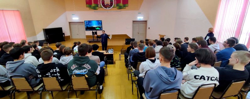 - 24.02.23 кворум (собрание учащихся по формированию навыков действий при угрозе жизни и здоровью в чрезвычайных ситуациях, безопасности на воде, пожарной безопасности и др.) «Действие и бездействие в условиях чрезвычайной ситуации» с участием специалиста СПиВО Жодинского ГОЧС Белабенко М.Г, старшего инспектора сектора надзора и профилактики Жодинского ГОЧС, майора внутренней службы Белова Г.М.