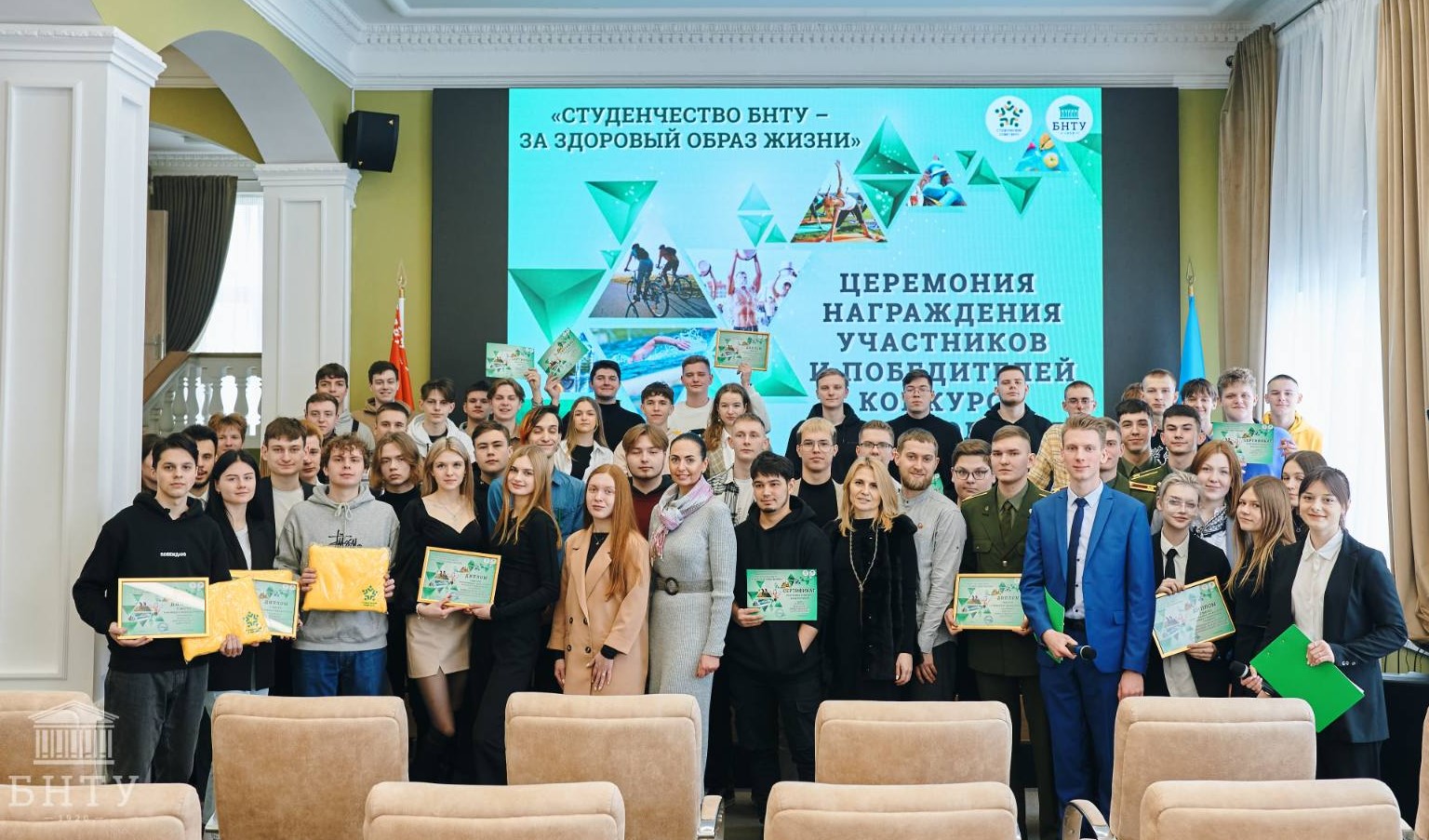 10 марта в БНТУ состоялась церемония награждения участников и победителей конкурса видеороликов. Учащиеся группы 59 ТМ приняли участие в акции "Студенчество БНТУ - за здоровый образ жизни",где заняли 1 место! Поздравляем победителей!