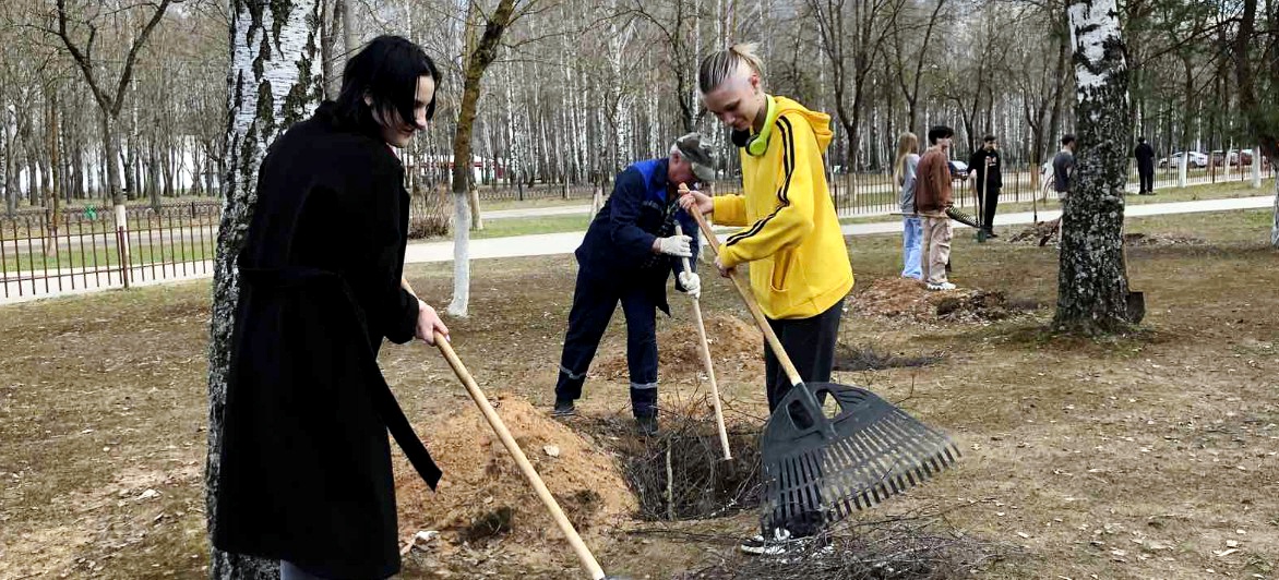 11 апреля обучающиеся филиала БНТУ "Жодинский государственный политехнический колледж" после учебных занятий занялись благоустройством территории коллджа: очищали территорию от сухих листьев, сучьев, белили дерьвья. Для нашего колледжа заниматься благоустройством территории - это добрая и полезная традиция. А ещё - это выражение отношения к своему городу, колледжу и повод провести время вместе.