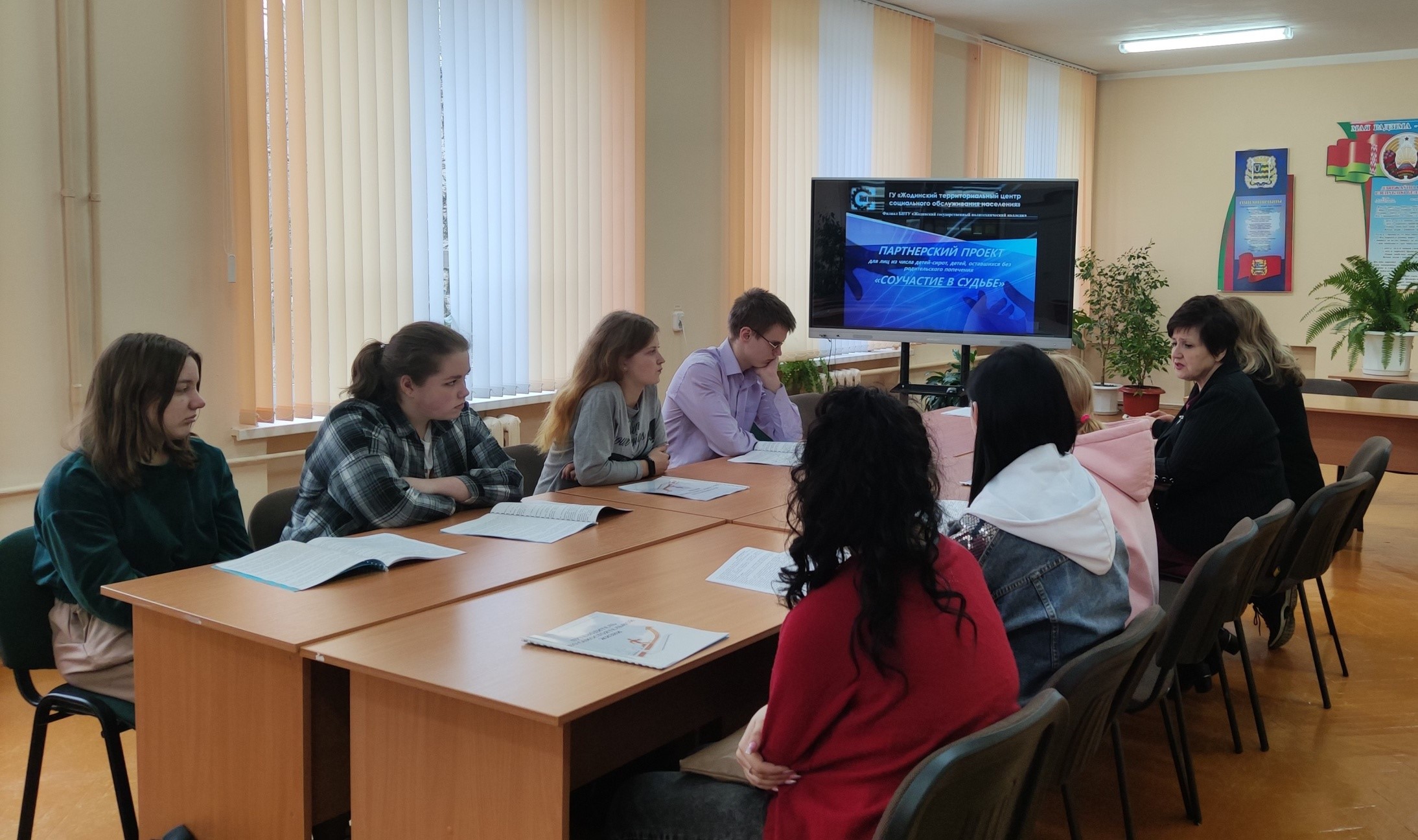 21 апреля в филиале состоялся семинар в рамках совместного проекта «Соучастие в судьбе» с ГУ «Жодинский территориальный центр социального обслуживания населения». На семинаре с учащимися были рассмотрены вопросы жизнеустройства, которые касались различных сфер деятельности: получения образования, трудоустройства, проживания, умения распоряжаться бюджетом, выстраивать отношения в коллективе. Специалист отделения социальной адаптации и реабилитации центра, Л.К. Самусевич, ознакомила ребят с актуальной информацией по данной тематике, а также среди учащихся была распространена разработка «Путеводитель по самостоятельной жизни».