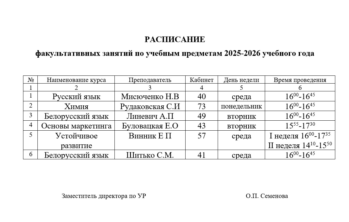 График факультативных занятий