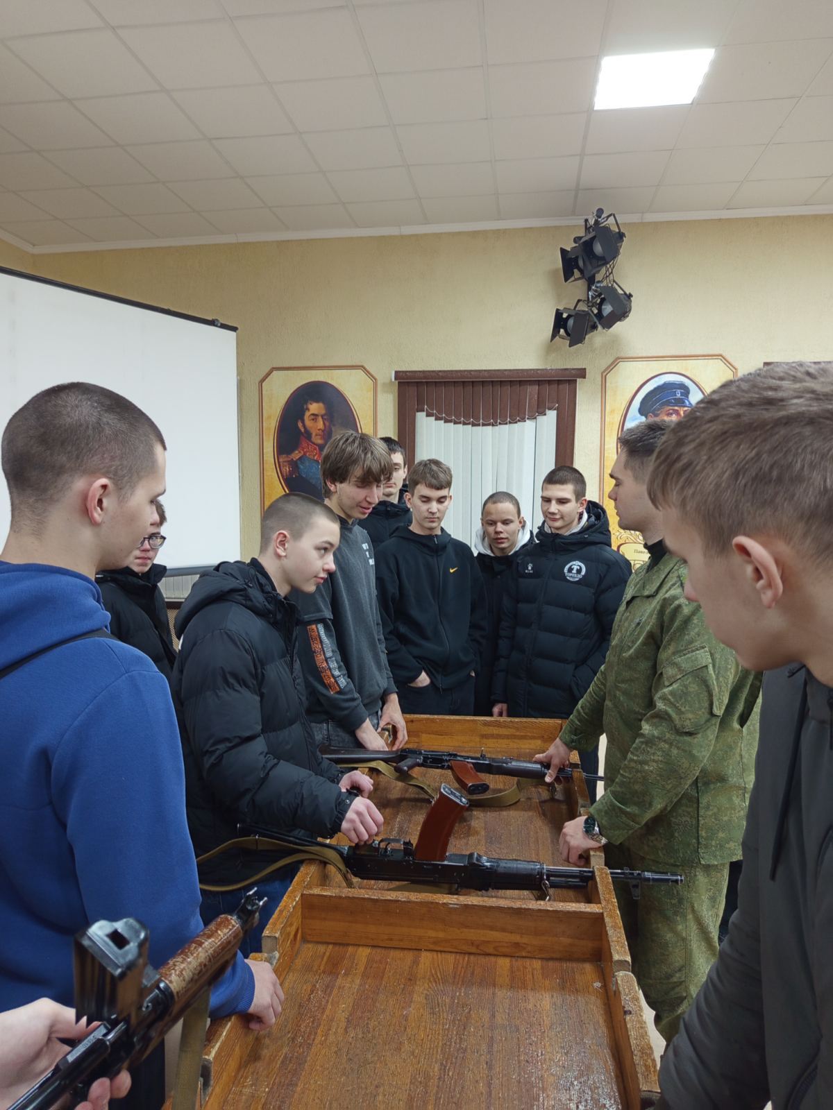 С ними была проведена экскурсия по территории комплекса, была представлена выставка образцов военной техники начиная с 30-х годов прошлого века и по настоящее время, будущие защитники Отечества увидели грандиозную систему оборонительных укреплений районов "Линия Сталина", которая стала символом героической борьбы советского народа против немецко-фашистских захватчиков.